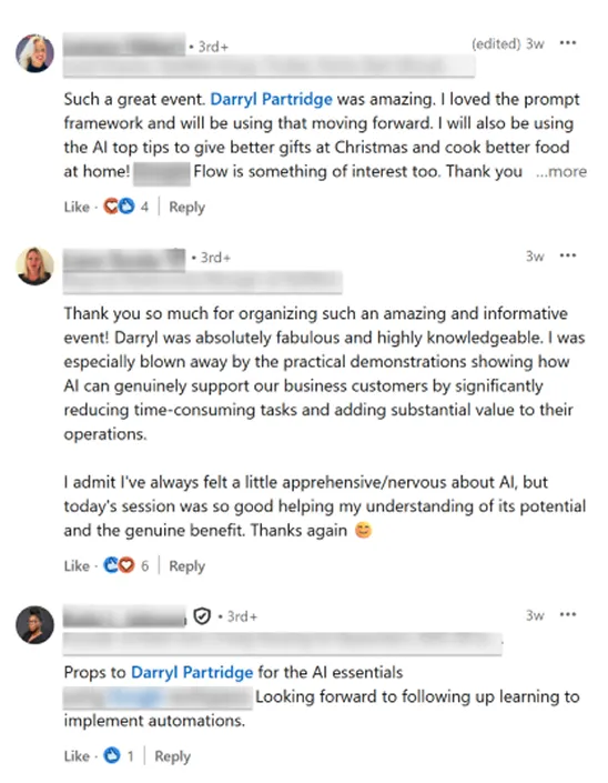 Since 2019, I have had the privilege of collaborating with one of the world’s most influential tech companies, helping thousands of individuals and businesses build practical AI skills, boost digital literacy, and accelerate their growth, delivering in-person training across the UK and interactive online sessions for a worldwide audience.